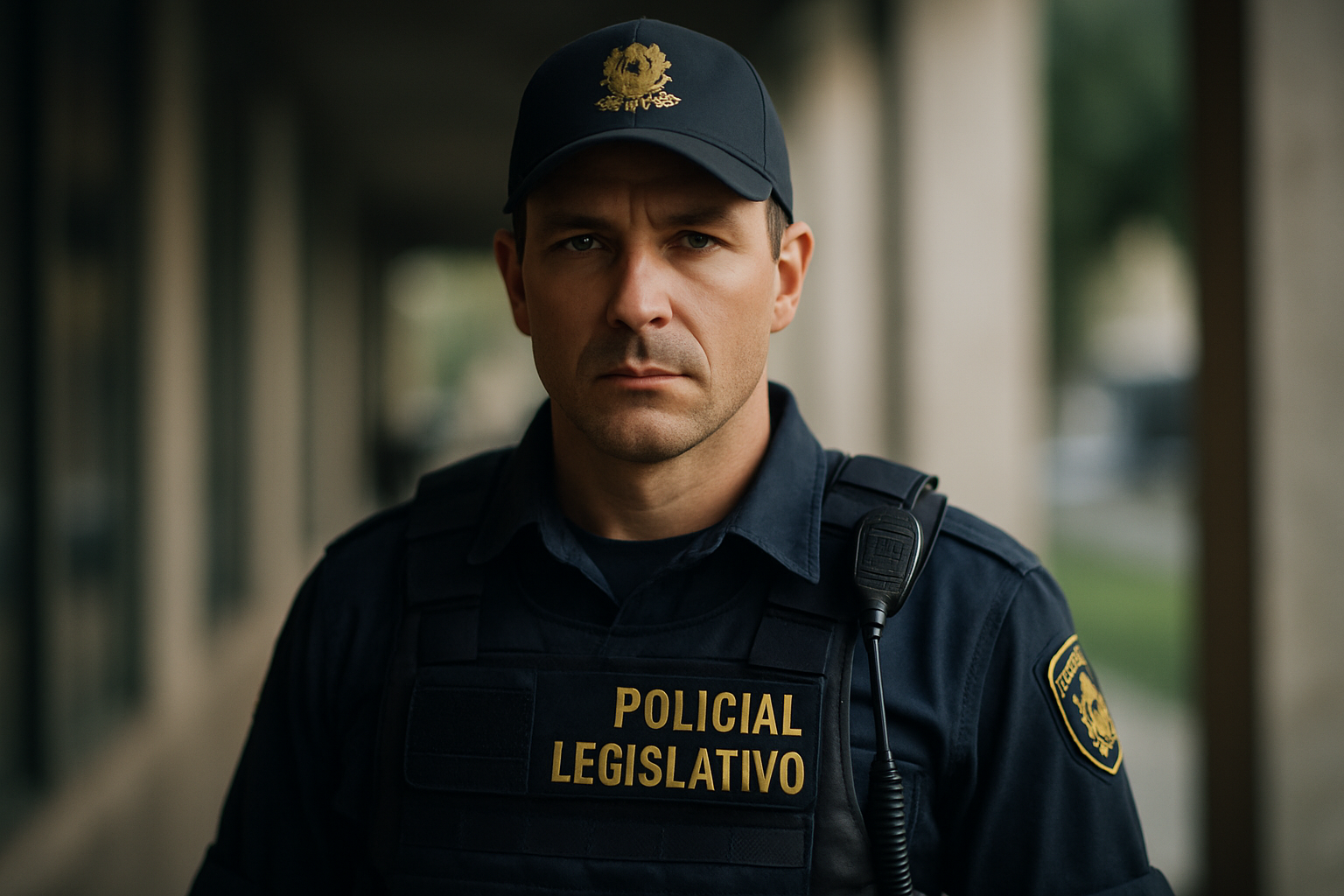 A imagem destaca um Policial Legislativo uniformizado, evidenciando a importância do cargo na segurança do Congresso Nacional.